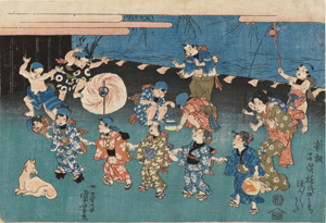「新板子供遊びのうち ぼんぼんうた」 天保12-13年(1841-42)頃 横大判錦絵(後期8/2~8/21) |