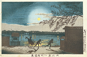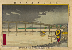 ![]() 《東京新大橋雨中図》明治9(1876)年 渡邊木版美術画舗 (後期展示:3/3〜3/22) |