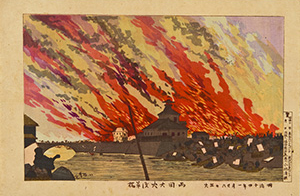 ![]() 《明治十四年一月廿六日出火 両国大火浅草橋》 明治14(1881)年 山口県立萩美術館・浦上記念館 (3/10〜3/22) |