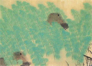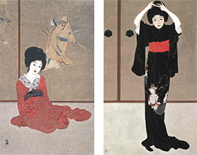 日本美術院は明治31年(1898)に岡倉天心によって創立された研究団体です。天心の指導のもと、横山大観や菱田春草は、墨や色のぼかしによって湿潤な大気を表現する描法など、新たな日本画の創造を目指しました。経営難もあり、明治40年(1907)頃には美術院の活動は事実上休止していましたが、岡倉天心の一周忌を契機に大正3年(1914)9月に横山大観らによって再興されました。再興された日本美術院の展覧会(再興院展)には、安田靫彦、今村紫紅、速水御舟、冨田溪仙、北野恒富らが意欲作を次々と発表しました。