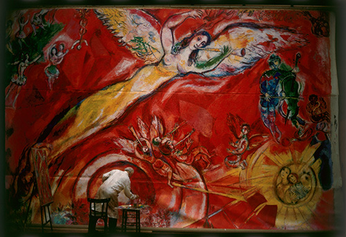20世紀を代表する画家の一人として、世界中で高い人気を誇るマルク・シャガール(1887-1985)。宙を舞うカップルや動物、現実離れした鮮烈な色彩など、その幻想的な絵画の数々は多くの美術ファンを魅了しています。その一方で、シャガールは第二次世界大戦後の後半生、歌劇場や美術館、ヨーロッパ各地の大聖堂、大学、議会などの公共空間を飾るモニュメント(記念碑的作品)も手がけています。大空間を飾るそれらの作品は、壁画や天井画、ステンドグラス、陶板画、モザイク画、タピスリーなど多彩な技法と形式によるもので、60歳を越してなお、新たな技法で巨大なスケールの作品に挑み続けた、その旺盛な制作意欲と才能には驚くべきものがあります。本展では、油彩画に加え、華やかなパリ・オペラ座の天井画、メッス大聖堂のステンドグラス等、代表的なモニュメントにかかわるシャガールの活動を、下絵やスケッチのほか、関連する絵画・版画作品、舞台衣装など日本初公開163点を含む計236点の作品で紹介します。