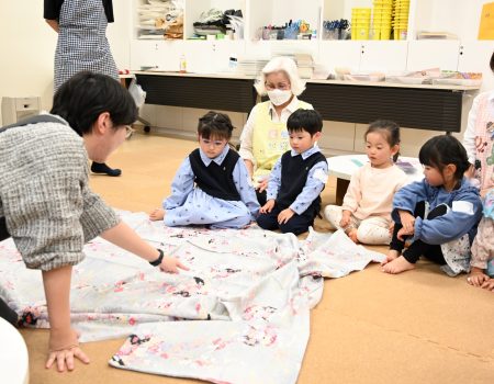 きものを見たことや、着たことがある?の質問に、「ある!」「七五三で着た!」と答えてくれる子も多くいました。