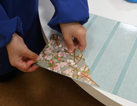 たくさんの和紙の中から好きなものを選んだら、制作スタート。