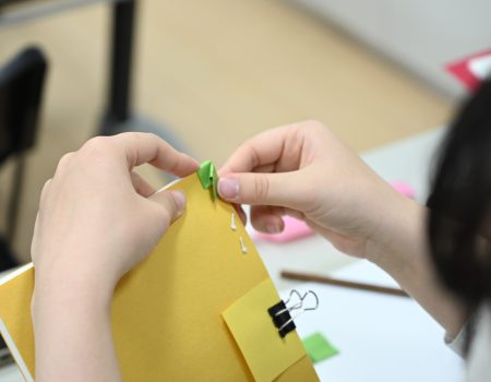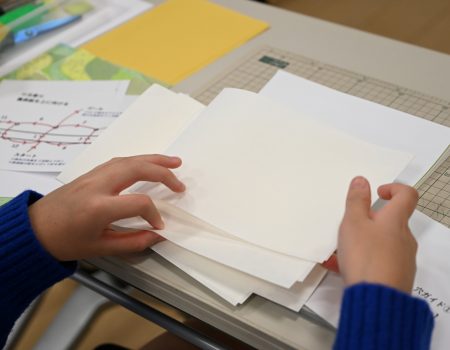 今回は昨年度と同様、新年にむけて、和綴(と)じ本(仕上がりA5サイズ・1人2冊)を手づくりしました。