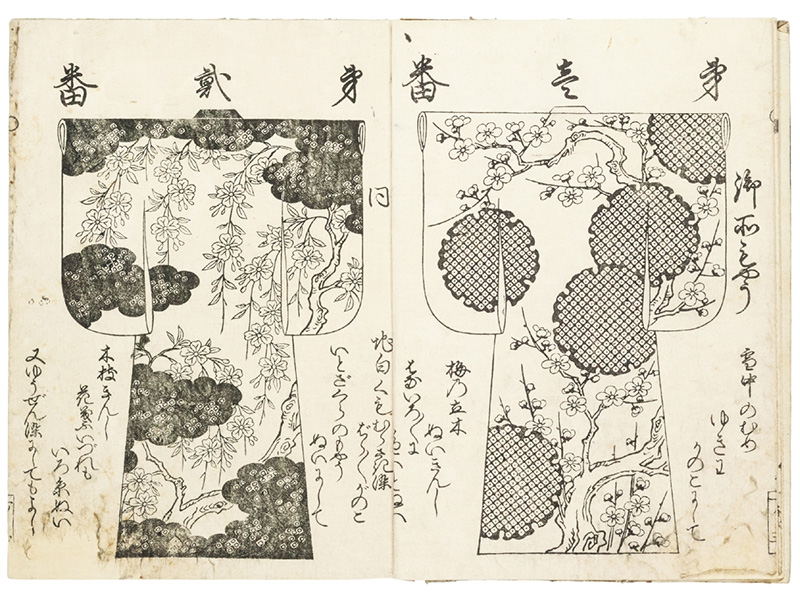 近世のきものの優品やこの時期に数多く出版された雛形本などの資料を通じて平面と立体を行き来するきものの造形的特徴と多様な意匠をご紹介します。